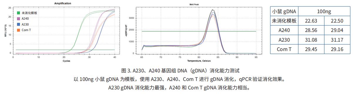 GenStar A230、A240 可有效去除 gDNA,保證擴(kuò)增結(jié)果的準(zhǔn)確性,避免 gDNA 殘留對 qPCR 結(jié)果的干擾
