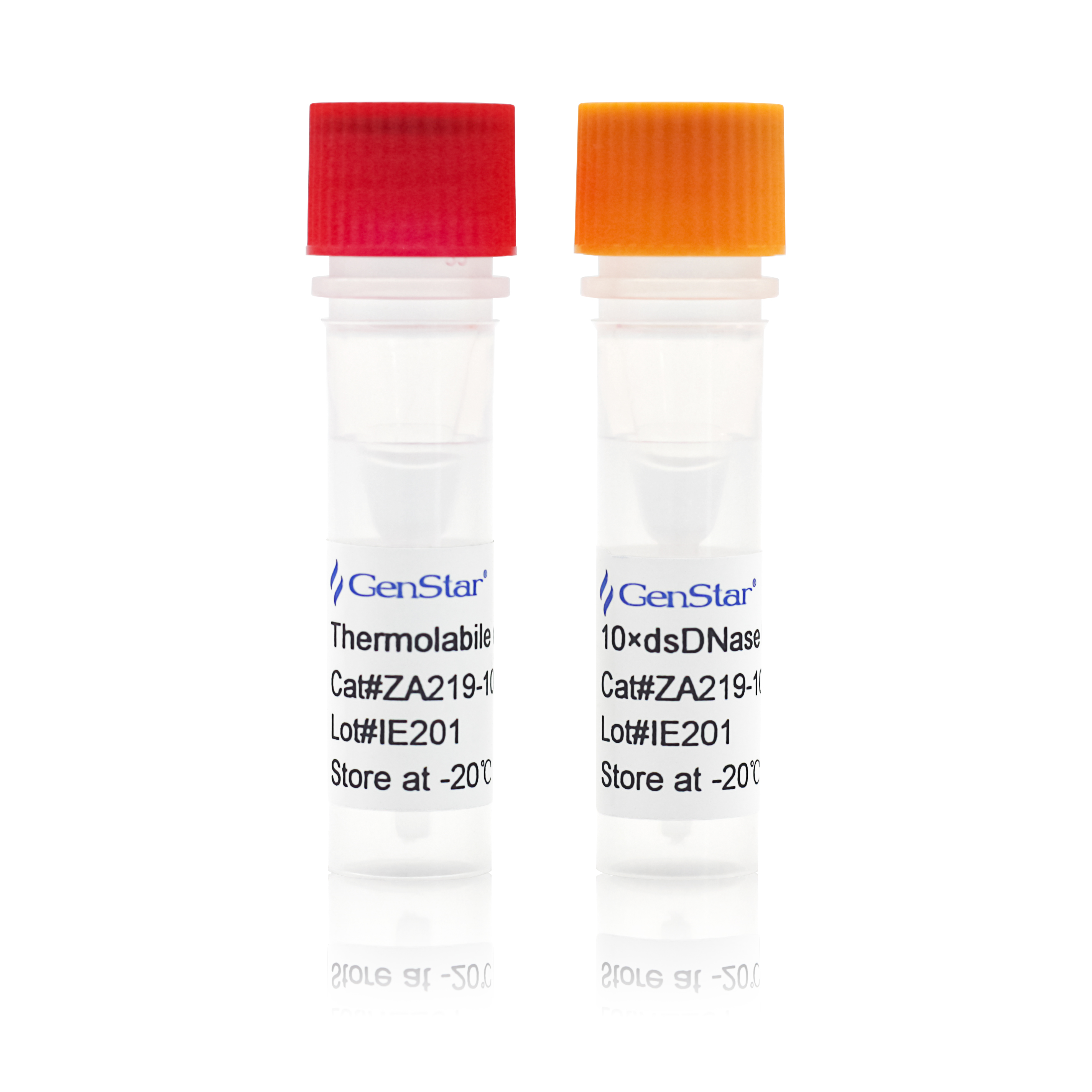 Thermolabile dsDNase 是一種熱敏感性的核酸內(nèi)切酶,能夠裂解 DNA 中的磷酸二酯鍵,生成帶有 5'- 磷酸和 3'- 羥基末端的寡核苷酸。本產(chǎn)品可特異性消化雙鏈 DNA(double-stranded DNA,dsDNA),不會(huì)對(duì)單鏈 DNA、引物、探針和 RNA 造成影響。同時(shí),本產(chǎn)品具有熱敏感特性,可在 55℃ 條件下快速失活。與傳統(tǒng)的使用 DNase I 去除基因組 DNA 污染的方法相比,無需額外加入 EDTA 等保護(hù)試劑,可有效減少對(duì) RNA 的損傷。Thermolabile dsDNase 適用于反轉(zhuǎn)錄實(shí)驗(yàn)前快速去除 RNA 樣本中的基因組 DNA 污染,節(jié)省實(shí)驗(yàn)時(shí)間,保證 RNA 水平定量的準(zhǔn)確性。
