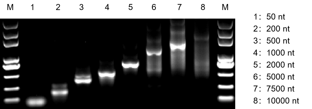GenStar #R101 可高度特異識別 T7 啟動子序列,能夠合成 50-10000 nt 的 RNA 產(chǎn)物。