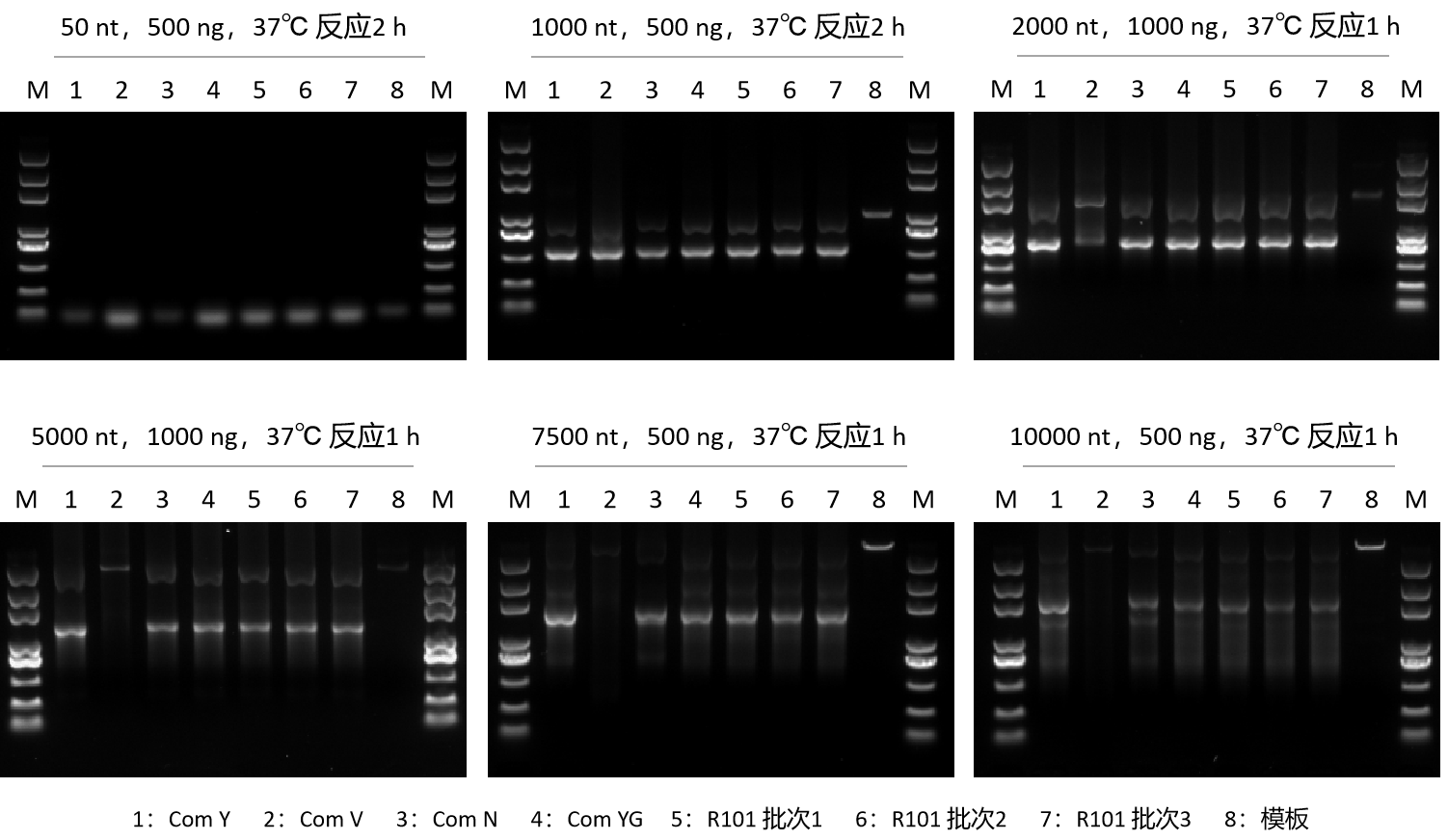GenStar #R101批次間性能穩(wěn)定,且轉錄效率優(yōu)于 Com Y 和 Com V。