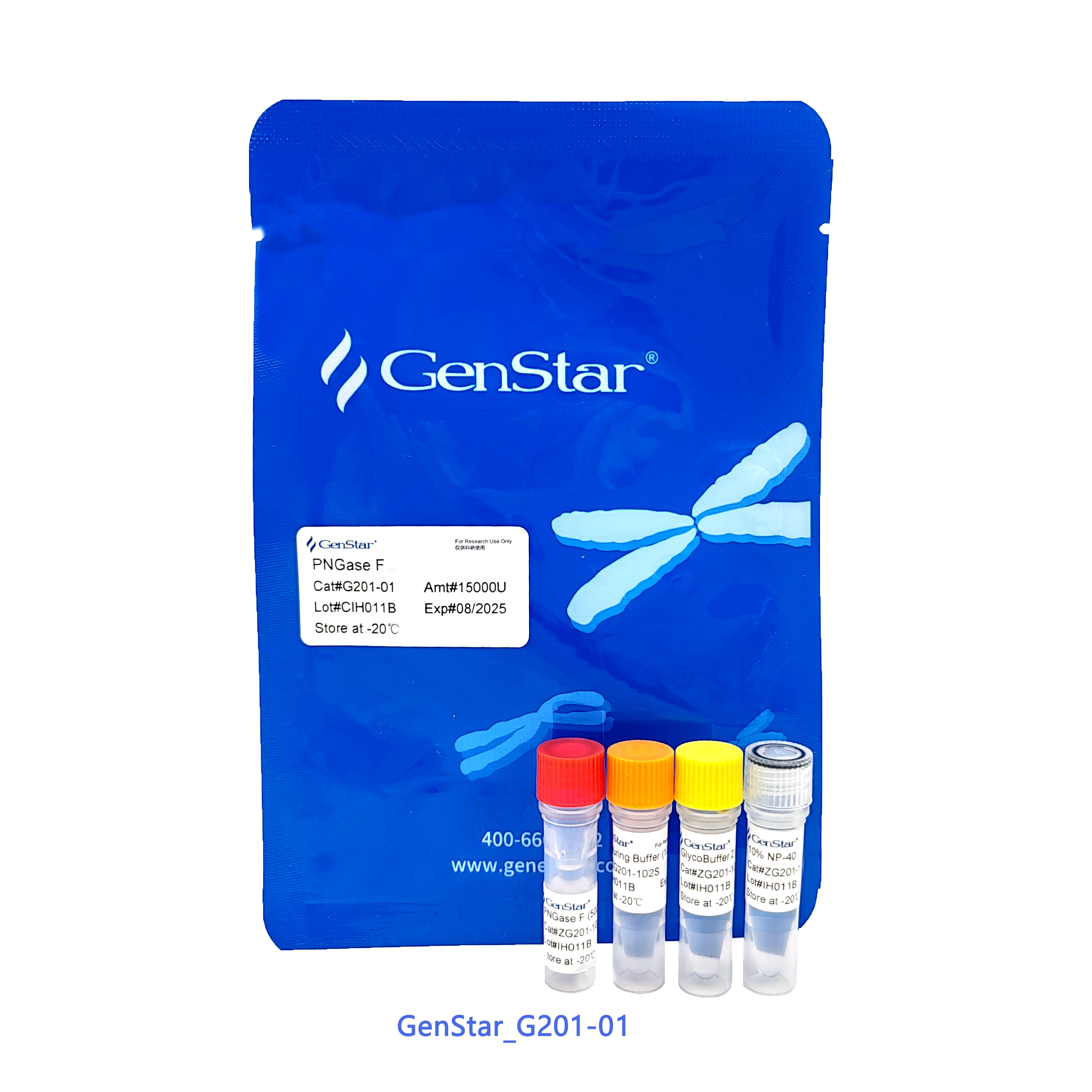肽N-糖苷酶 F(PNGase F)是一種酰胺水解酶,克隆自和平空間站伊麗莎菌(Elizabethkingia miricola, formerly Flavobacteriummeningosepticum),在大腸桿菌中重組表達(dá)。PNGase F 可以裂解由天冬酰胺連接的高甘露糖,及雜合和復(fù)雜的寡糖糖蛋白。PNGase F 切割位點(diǎn)為糖蛋白內(nèi)側(cè) N-乙酰葡萄糖胺(GlcNAc)和天冬酰氨殘基之間的酰胺鍵,同時(shí)將酶解后蛋白上的天冬氨酰轉(zhuǎn)化為天冬氨酸,而不會(huì)去除常見植物糖蛋白上含有核心 α-(1,3)-巖藻糖連接的寡糖。本產(chǎn)品常應(yīng)用于抗體及其相關(guān)蛋白完全去糖基化。