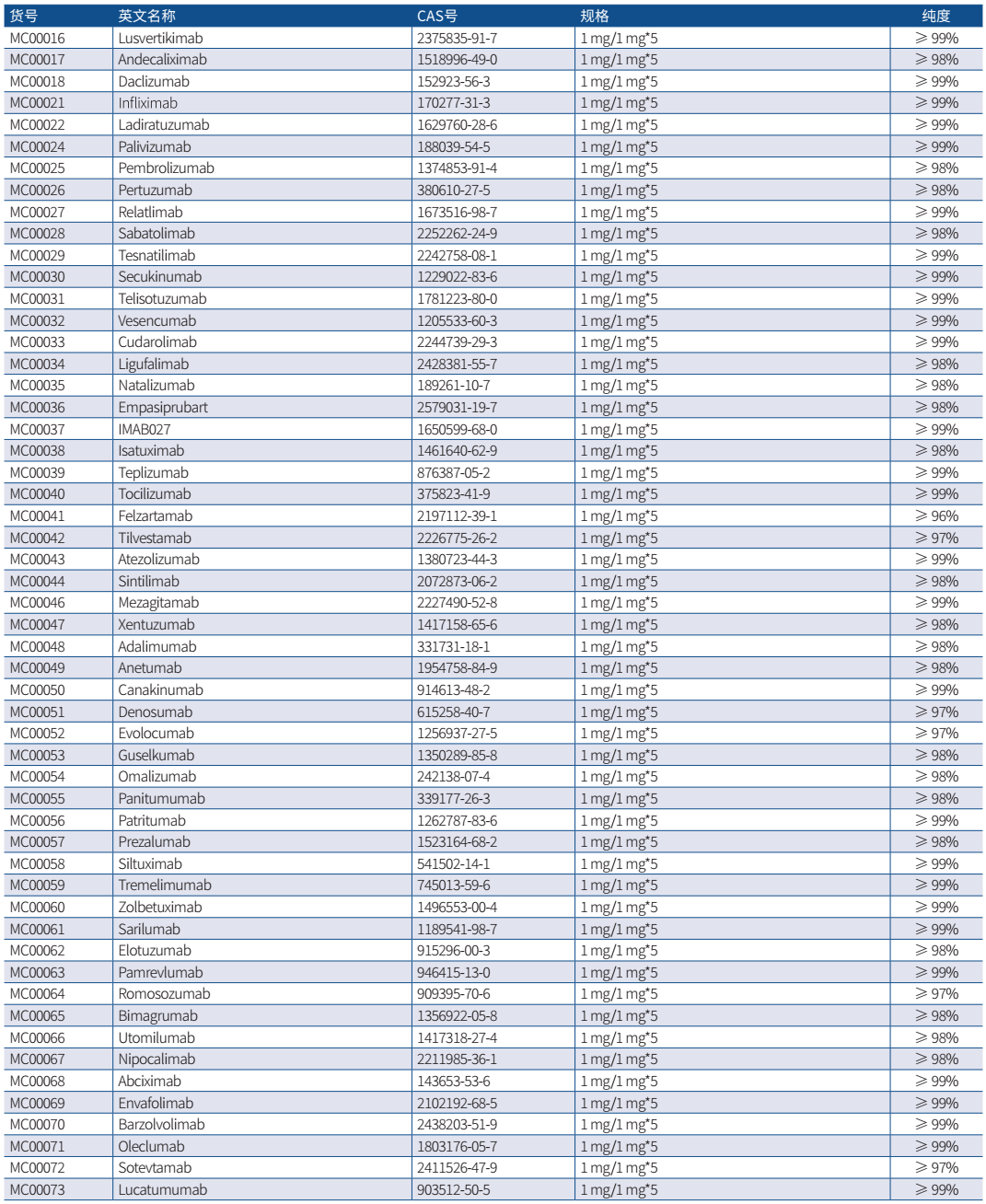本界面只顯示部分產(chǎn)品信息,若想獲取更多小分子系列產(chǎn)品信息,請(qǐng)聯(lián)系我們銷售或致電技術(shù)支持熱線:400-666-3332
