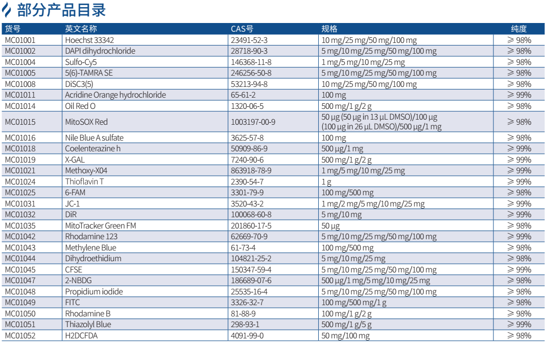 GenStar 目前擁有近 200 種熒光染料試劑,覆蓋細(xì)胞染色分析、動物活體成像、生物偶聯(lián)、標(biāo)記化學(xué)等眾多熱門研究領(lǐng)域,具有靈敏度高,穩(wěn)定性好,熒光強(qiáng)度高等特點(diǎn)。