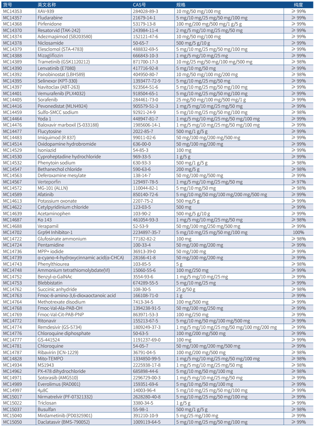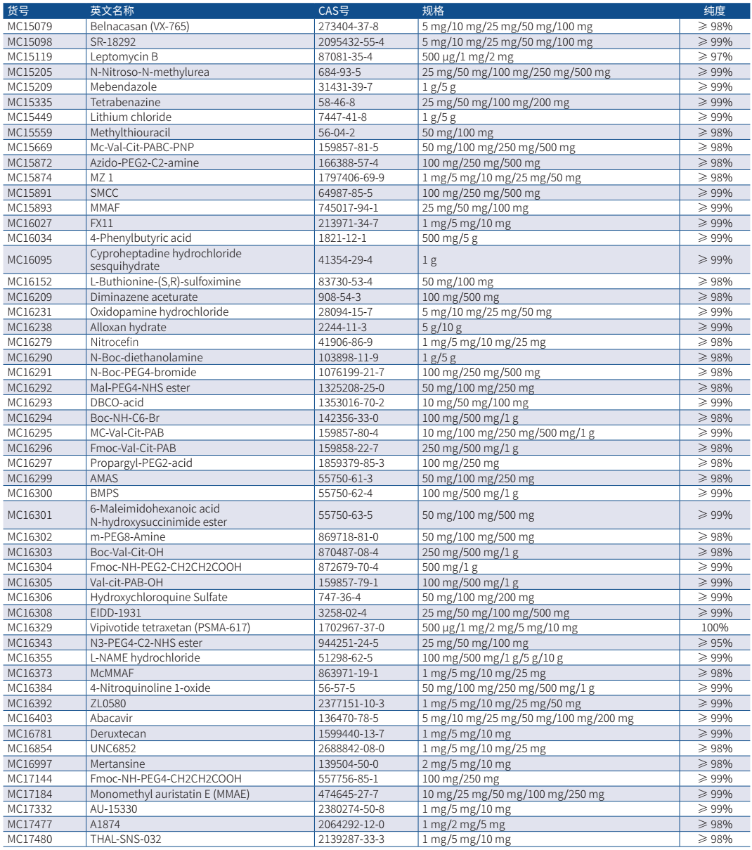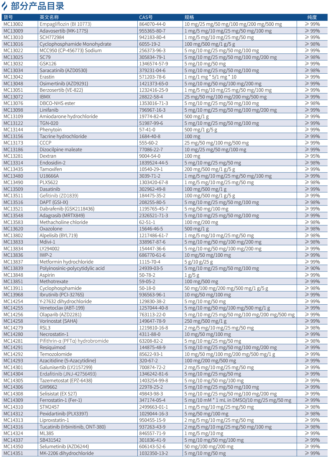 本界面只顯示部分產(chǎn)品信息,若想獲取更多小分子系列產(chǎn)品信息,請聯(lián)系我們銷售或致電技術(shù)支持熱線:400-666-3332